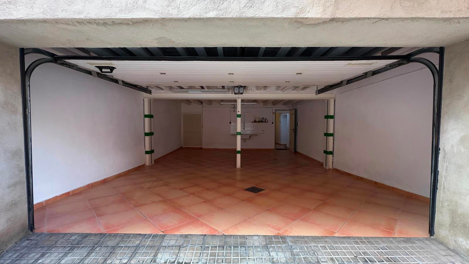 Un garaje donde caben hasta 3 coches. Ahora todos los coches duermen en casa. Una sala donde guardar tus trastos y probablemente los de otros.